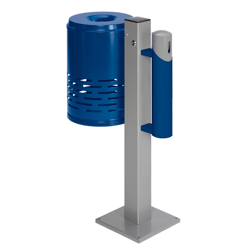 28121VAR Abfallsammler/Ascher - Kombination AG 101,Abfallkorb enzianblau (RAL 5010) - Korpus enzianblau (RAL 5010) -Kopfteil silber