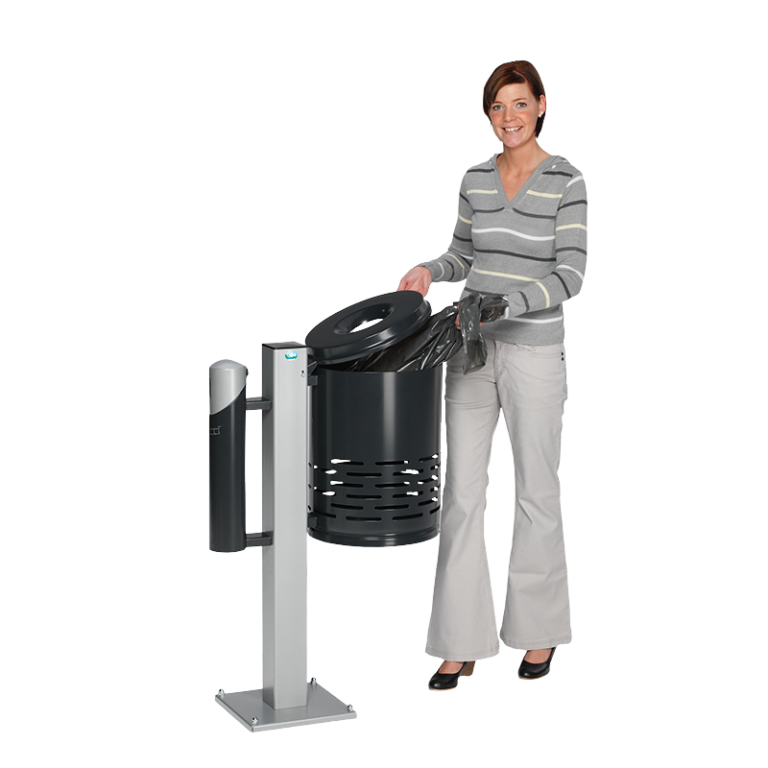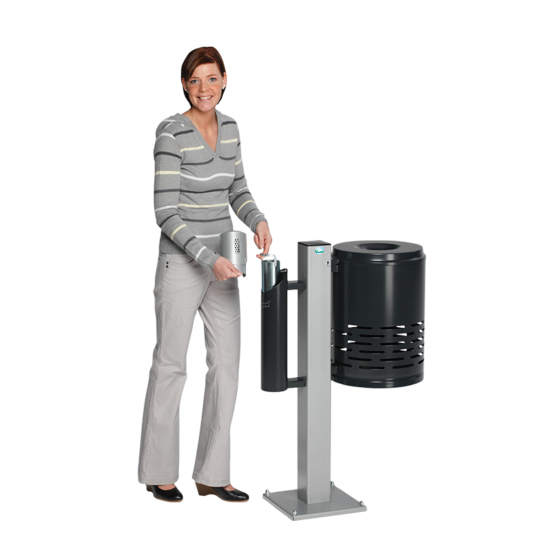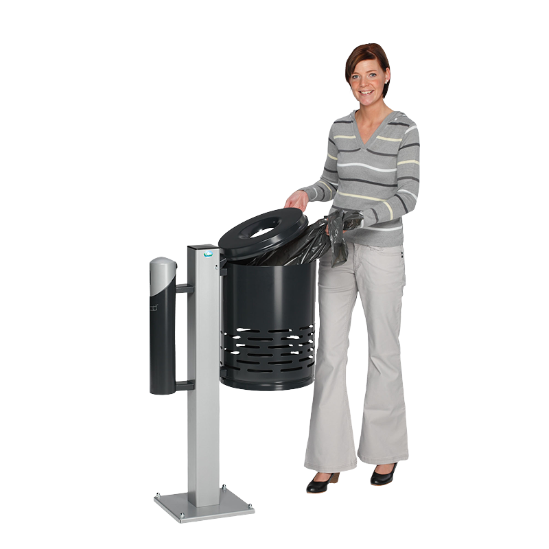 28122VAR Abfallsammler/Ascher - Kombination AG 101,Abfallkorb anthrazit (RAL 7021) und Korpus anthrazit (RAL 7021) - Kopfteil silber
